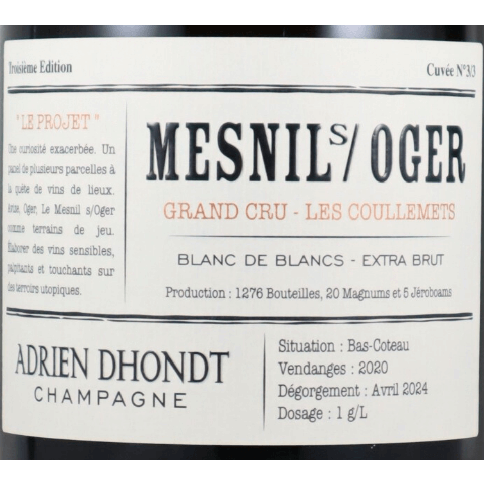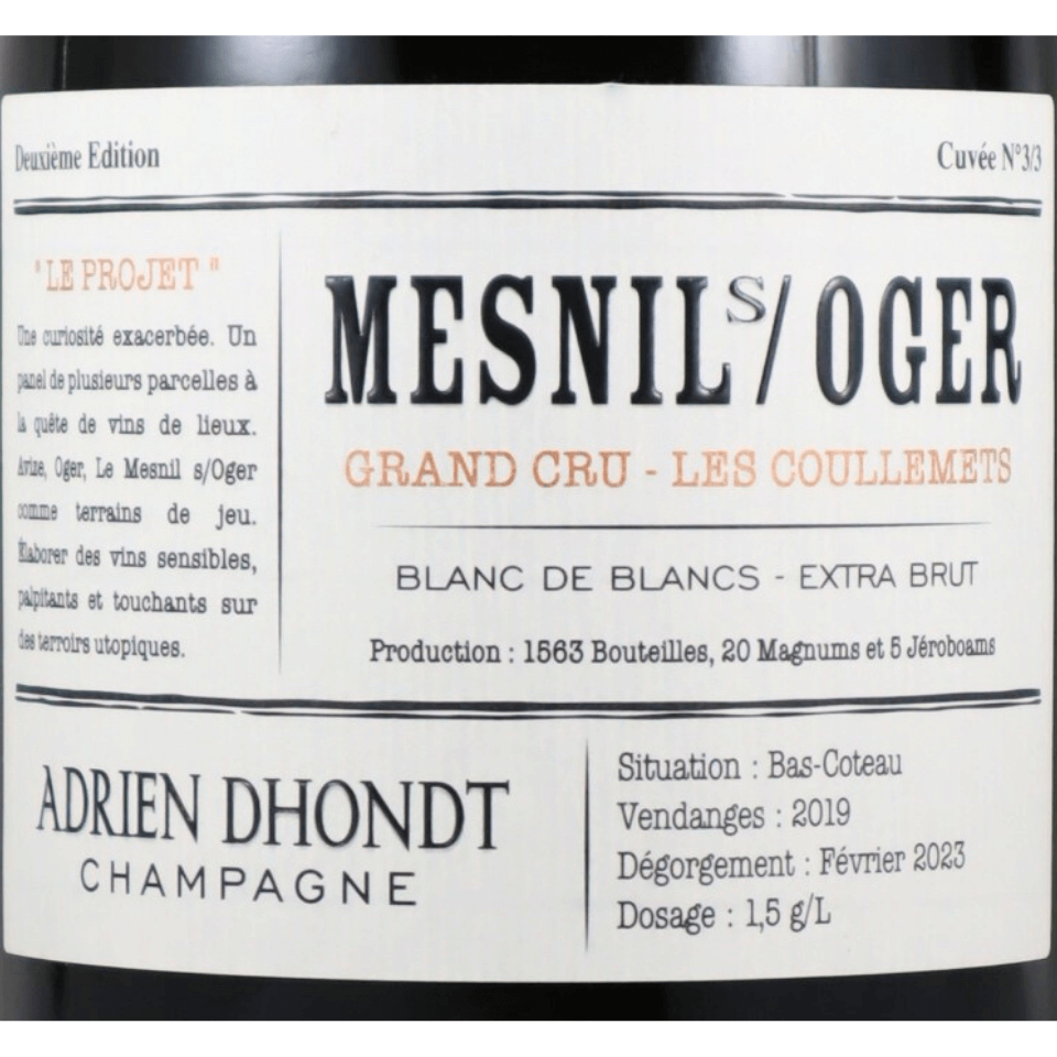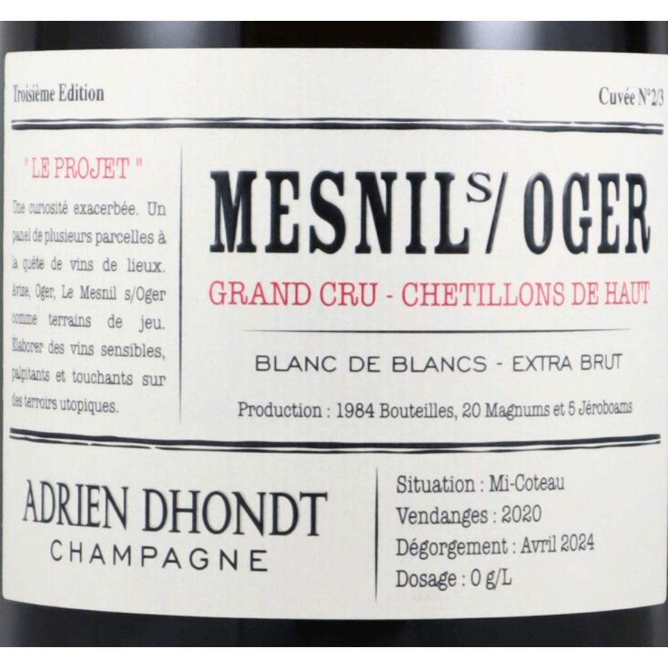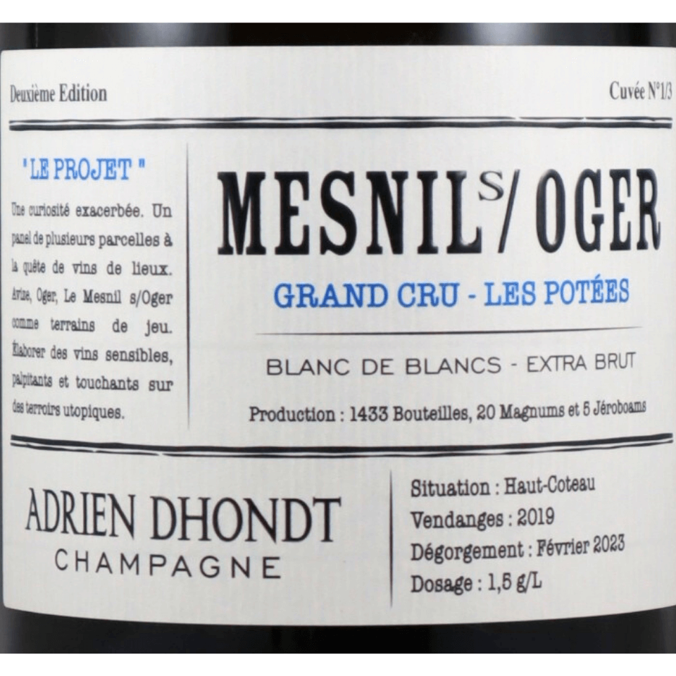 ブラン ド ブランの名手と評判のドント グルレのアドリアンのプロジェクトは特級メニル シュル オジェの単一畑もの。ごく僅少の入荷です。